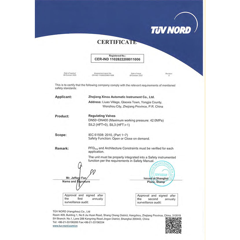 調(diào)節(jié)閥 SIL證書 1